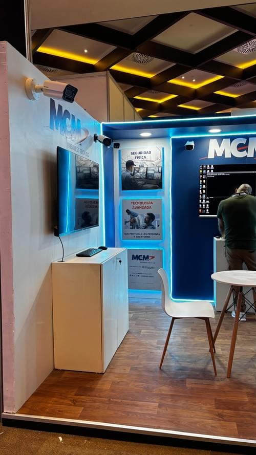 Desde el diseño estructural hasta el montaje final, nos encargamos de todo el mobiliario, la instalación técnica y la ambientación, logrando un stand funcional, atractivo y alineado con la identidad corporativa de MCM Telecom.